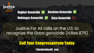 Save India From Fascism: Our multiple reports and educational material raise awareness of the plight of Muslim and other minorities in India. Our Petition asking the Bill and Melinda Gates Foundation not to honor Prime Minister Modi gained more than 100,000 signatures. We engage with government officials, both in the United States and Canada (via Justice For All – Canada) and regularly send research memos and policy papers to the relevant agencies. We work with Christian and Hindu partners on a regular basis.