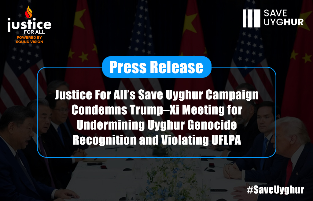 Justice For All’s Save Uyghur Campaign Condemns Trump–Xi Meeting for Undermining Uyghur Genocide Recognition and Violating UFLPA